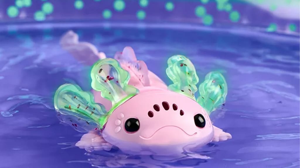 Dacă copiii mângâie capul (și activează senzorul de burtă ținându-l în mână), axolotl-ul indică starea de spirit a copilului prin diferite culori. Este disponibil și un ghid de culori-stări — albastru înseamnă somnoros, mov înseamnă fericit, verde înseamnă năstrușnic, și așa mai departe. Când copiii mângâie doar capul fără să atingă senzorul de burtă, micul axolotl cântă un cântec. Jucăria poate să se miște și în apă într-o piscină gonflabilă.Fingerlings axolotl bebeluș este incredibil de drăguț și reactiv, astfel încât copiii pot simți că au un animal de companie adevărat - fără mizerie! Copiii de 5 ani și mai mari pot învăța cum să împartă și să alterneze mângâierea jucăriei, observând mișcarea cozii, ascultând sunetele și descoperind starea de spirit a axolotlului. Familiile pot interacționa cu jucăria animal de companie în timp ce înoată în piscină sau pot avea grijă de prietenul lor fără a adăuga o piscină plină cu apă la timpul de joacă.
