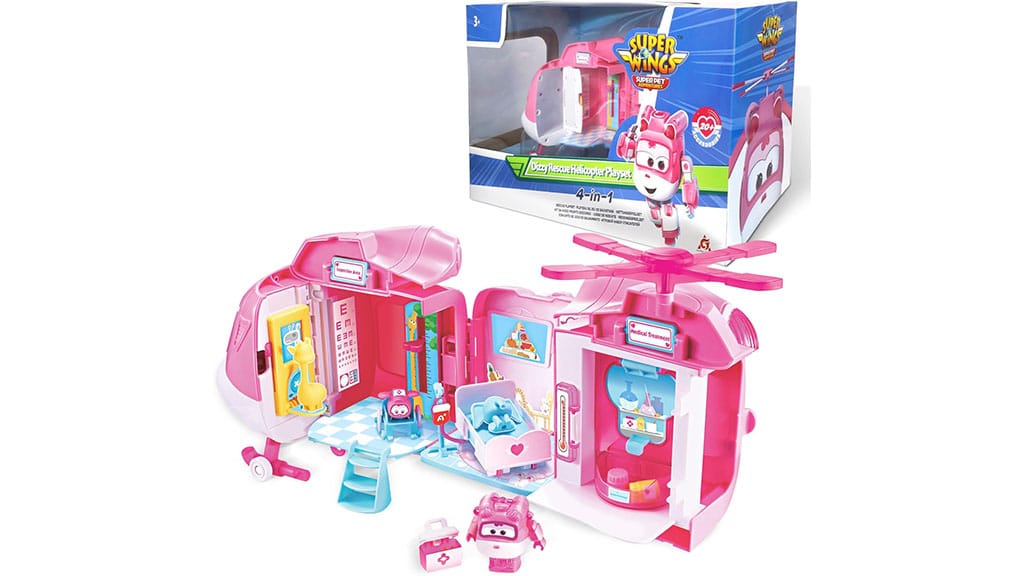 Acest set de joacă, bazat pe seria Super Wings, se poate transforma din elicopter în spital, astfel încât copiii pot realiza salvări perfecte. Setul oferă posibilitatea celor mici să se joace creativ, dezvoltându-și imaginația și învățând despre ajutor și munca în echipă prin jocuri de rol. Setul de joacă este fabricat din material durabil, astfel încât să aducă bucurie copiilor pentru o perioadă lungă de timp, în timp ce trăiesc aventuri palpitante în timpul scenelor de salvare.
