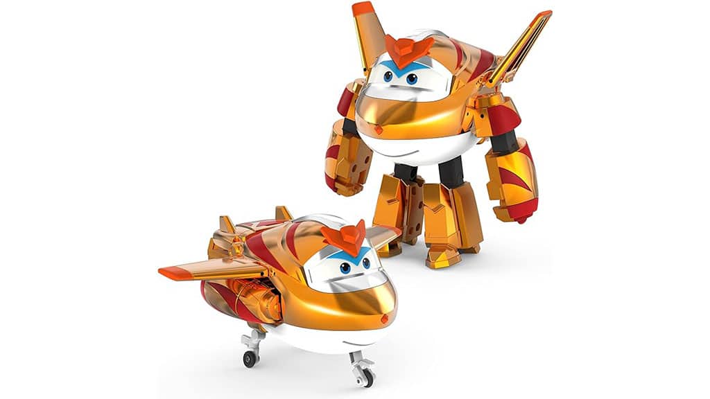 Golden Boy, răufăcătorul din seria Super Wings, se poate transforma cu ușurință din Modul Robot în Modul Avion datorită articulațiilor sale mobile. Această abilitate îi permite să se adapteze rapid la diferite situații și să-și surprindă adversarii. Datorită transformării sale flexibile, Golden Boy este mereu pregătit pentru noi provocări, fie că este vorba de urmăriri aeriene sau acțiuni la sol.