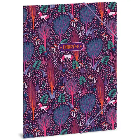 Dosarul Charme va atrage în primul rând fetele, deoarece exteriorul este asigurat de o pădure magică. Acest dosar cu elastic, care poate fi una dintre cele mai speciale și foarte utile piese de echipament școlar. Datorită dimensiunii sale A4, este excelent pentru toate dimensiunile obișnuite de pagină, iar coperta poate fi fixată cu ușurință cu o bandă de elastic, astfel încât să fii sigur că paginile și documentele din el nu vor fi deteriorate sau pierdute.