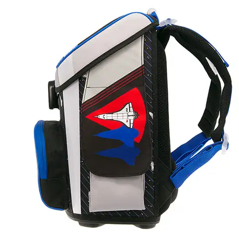 Cu geanta de școală NASA-1, poți să călătorești într-o nouă dimensiune și să te imaginezi ca și cum ai fi în spațiu. În rest, acesta este un rucsac grozav pe care cei mai mici școlari îl vor îndrăgi. Exteriorul său îi încântă complet pe băieți, dar și caracteristicile interioare merită menționate, întrucât designul spatelui prietenos cu coloana vertebrală și zona șoldului căptușită, precum și bretelele late și moi, care pot fi reglate în trei puncte, asigură confort. Partea inferioară tare și materialul hidrofug de înaltă calitate fac ca geanta să fie durabilă și de lungă durată. Acest rucsac este de asemenea extrem de practic la interior, deoarece are un compartiment mare cu despărțitor textil, precum și un buzunar mic cu fermoar și un buzunar cu velcro pe ambele părți, care ajută la organizare.