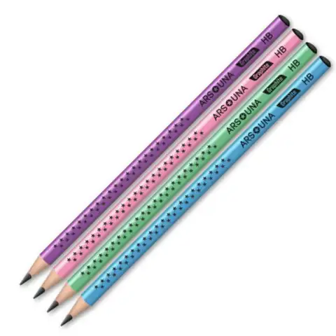 Modelele fac ca creioanele, care sunt disponibile in mai multe culori, sa fie cu adevarat speciale si elegante. Creioanele de grafit de calitate premium de la Ars Una sunt excelente pentru utilizare la școală, acasă sau chiar pentru munca de birou. Designul triunghiular asigură o prindere confortabilă în timpul utilizării. Creionul este fabricat din lemn de înaltă calitate și umplut cu un vârf rezistent la rupere. Duritatea vârfului HB este cel mai general tip și poate fi folosită în toate scopurile.