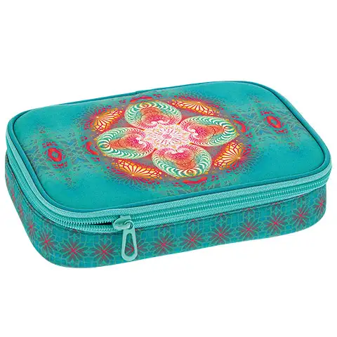 Mandala Turquoise Hope este un design cu adevărat special pentru un penar. Culorile calde și strălucitoare ale acestui penar pliabil pe mai multe niveluri le vor uimi pe fetițe, care își pot pune toate articolele de papetărie în el, deoarece există suficient spațiu la dispoziție. Datorită calității sale excelente, va fi folosit mult timp. Când deschideți buzunarul cu fermoar, există pagini care pot fi răsucite în interior, care pot ține 30 + 4 articole de papetărie și există și un penar încorporat, care oferă spațiu suplimentar pentru creioane și pixuri.