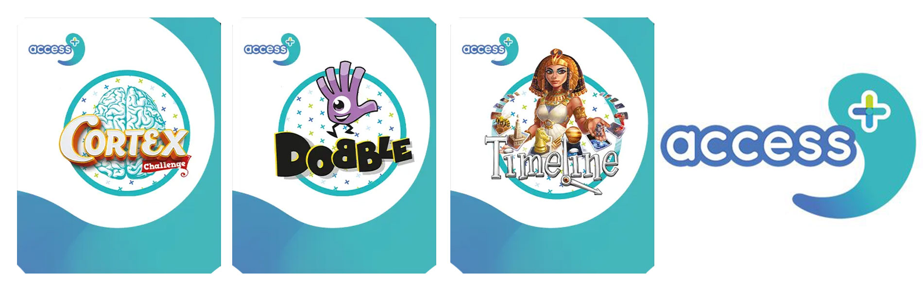 Caracteristicile de accesibilitate din jocurile Access + includ cărți mai mari, mai groase și mai ușor de manevrat, reguli adaptate, diferite grade de dificultate și o versiune „pentru un singur jucător” care promovează independența pacientului. Fiecare joc vine cu o broșură despre care oamenii de știință spun că arată beneficiile jocului.