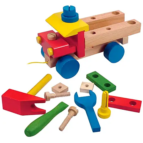 Băieţii pot monta şi repara după placul lor acest autocamion, a cărui elemente au fost realizate strict din lemn de calitate. Cu sculele şi cu şuruburile ele pot deveni un mecanic adevărat, şi pot dezasambla şi monta vehiculul colorat în doar câteva minte. Este o jucărie minunată care dezvoltă dexteritatea, şi face cunoştinţă cu formele, în timp ce copilaşii se joacă distractiv!