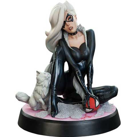Pentru colecționarii fanatici pentru adulți, iubitori de benzi desenate Spider-Man, Sideshow a creat această figurină de colecție deosebit de realistă și sofisticată de Black Cat, care se așteaptă să ajungă pe rafturile magazinelor primăvara viitoare. Felicia Hardy este unul dintre cei mai iscusiți hoți care fură pe furiș ca un infractor de pisici care se furișează și scapă de urmăritori cu cascadorii acrobatice care jenează acrobația. Pisica Neagră a furat odată și inima lui Spider-Man, care a vrut să-și transforme iubirea într-un mod bun cu orice preț, fără succes, desigur, deoarece natura felină a Feliciei a prevalat asupra tuturor. Felicia are o abilitate specială care aduce nenorocirea dușmanilor ei sub forma unei aură care aduce ghinion. Felicia este pe drumul cel bun după o bătălie care s-a încheiat în stânga și luptă cu Spider-Man împotriva criminalilor. Cea mai memorabilă bătălie a fost împotriva Bloodbreaker-ului și a bandei sale, care au amenințat toată New York-ul, din care a ieșit învingător alături de Spider-Man. Statuia Pisicii Negre are o înălțime de aproximativ 23 cm și culminează pe un piedestal rotund de 18 cm în compania unui pisoi alb ca zăpada.