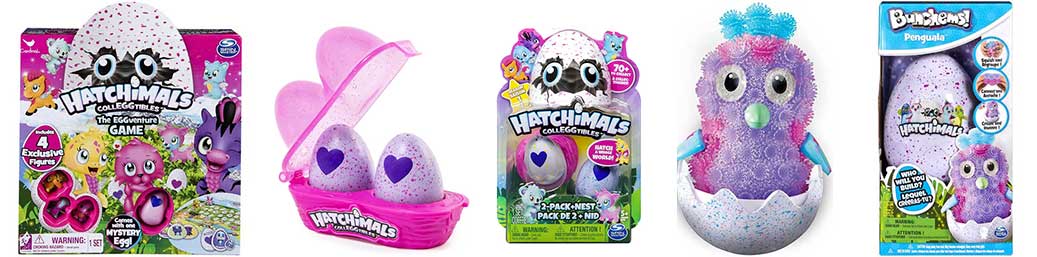 Când Spin Master și-a dat seama că au creat ceva uriaș, au vrut să lanseze produse noi, astfel încât să putem găsi pachete surpriză Hatchimals pe rafturile magazinelor de jucării, care includeau și figuri care puteau fi colectate în ouă mici, într-o selecție uriașă. Există un total de 13 familii diferite, care pot fi diferite prin culoare, formă sau specii de animale și astfel putem colecta 70 de tipuri de figurine. Pentru acestea, putem obține, de asemenea diverse accesorii, cum ar fi un suport pentru ouă, un cuib sau doar un ou uriaș care poate fi aranjat și găzduiește micile figurine.