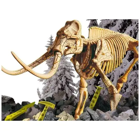 Trusa de arheologie Mammut Lisciani I'M Genius este o jucărie educațională interesantă concepută pentru tinerii oameni de știință și arheologi pentru a afla despre minunile timpurilor preistorice. Scopul jocului este ca copiii să descopere rămășițele mamutului, în timp ce învață elementele de bază ale cercetării arheologice și își aprofundează cunoștințele despre animalele preistorice. Setul de joacă include uneltele necesare, cum ar fi o cazma și o pensulă, cu care copiii pot săpa cu grijă și răbdare și să sculpteze oase de mamut dintr-un bloc de ipsos încorporat. În timpul jocului, copiii își dezvoltă abilitățile motorii fine, coordonarea ochi-mână, abilitățile de rezolvare a problemelor și răbdarea. Jocul Lisciani I'M Genius Mammut Archaeology Kit include și material educațional care prezintă viața, evoluția și caracteristicile lumii preistorice a mamuților.