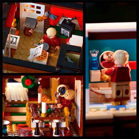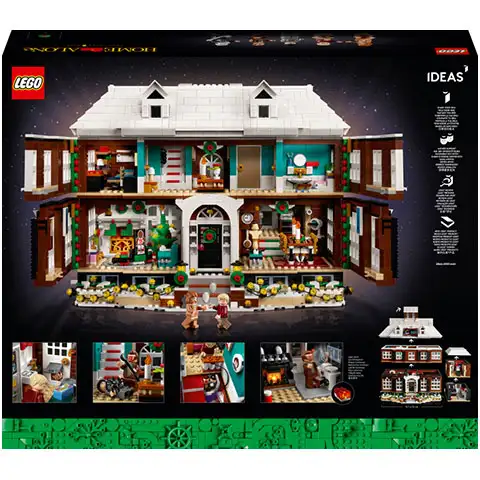 Setul include 5 minifigurine LEGO ale lui Kevin McCallister, mama lui Kate McCallister, criminalii Harry și Marv și Marley „lopata de zăpadă”. În plus, în duba lui Harry și Marv veți găsi și articole de rangă și șapcă de poliție. Cu 3.957 de elemente, aceasta este cea mai mare Idei LEGO stabilite până în prezent, ale căror cărămizi sunt distribuite în pachete separate urmând intriga filmului, astfel încât să puteți retrăi povestea în timpul construcției în perioada sărbătorilor.
