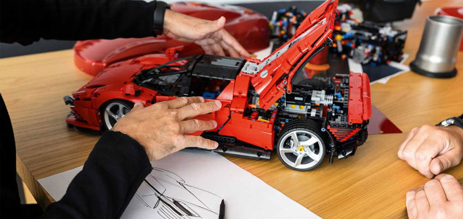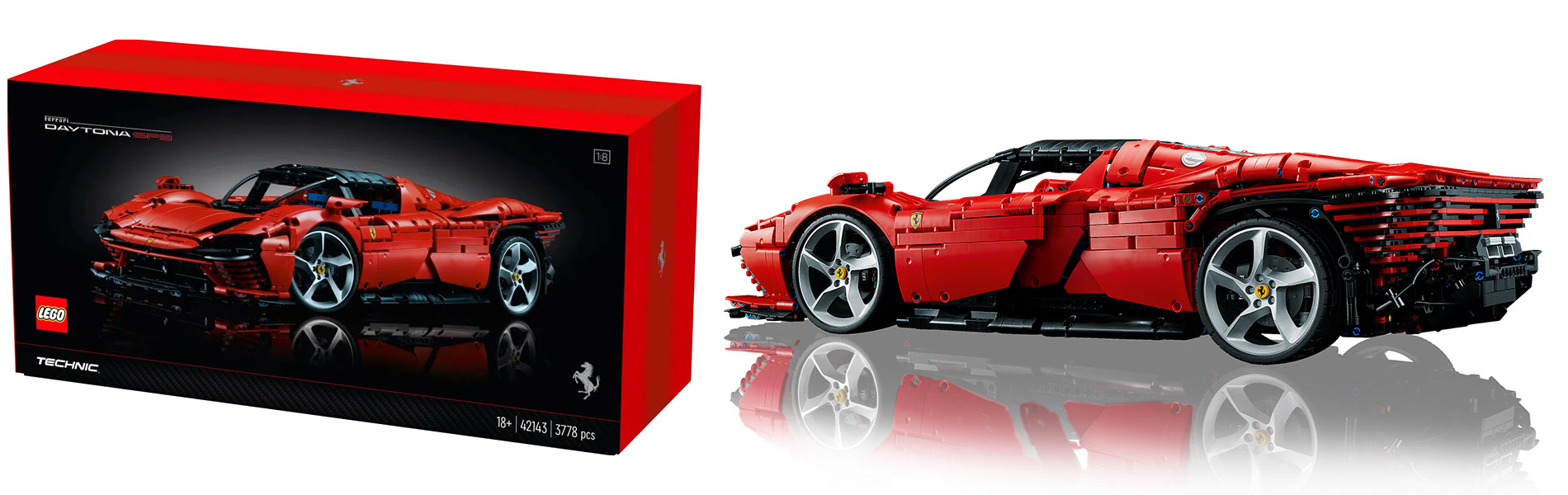Desigur, LEGO Technic s-a străduit să afișeze cât mai multe dintre soluțiile de inginerie Ferrari pe propriul model, astfel încât modelul cu un nivel ridicat de funcționalitate este o replică a unui Ferrari adevărat. LEGO Daytona SP3 este echipat cu un motor V12 complet cu roți direcționabile, o transmisie secvențială cu 8 trepte, o transmisie și un piston mobil. La fel ca supermașina originală, acest model Ferrari de colecție are uși tip fluture care se deschid în sus. Sub capotă, puteți vizualiza numărul de serie unic pentru a debloca conținut online special.