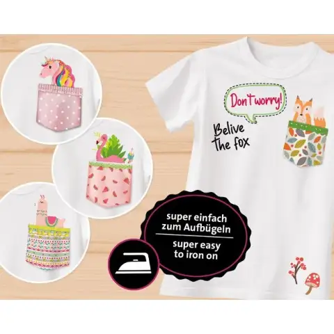 LENA: Fii creativ cu tricou! - Set creativ de decorare tricouri cu buzunareLENA: Fii creativ cu tricou! - Set creativ de decorare tricouri cu buzunare