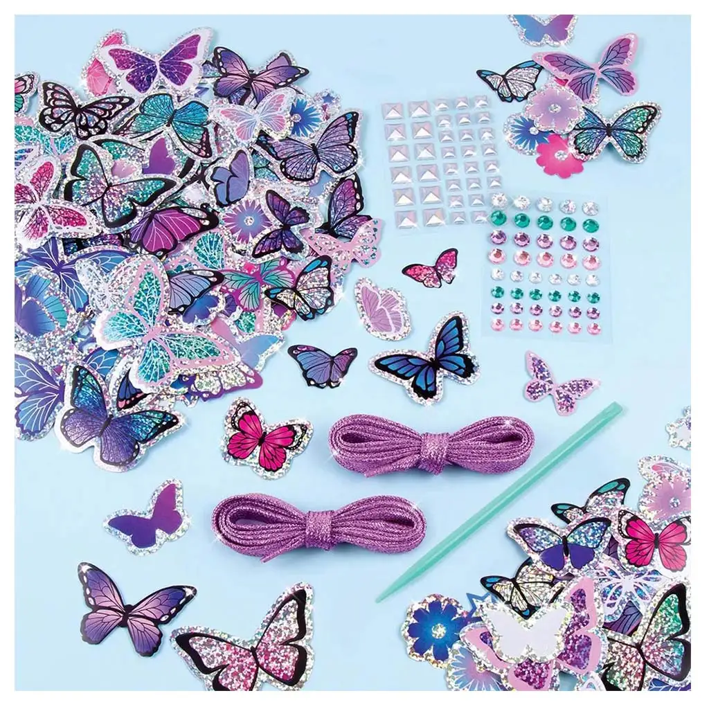 Creați singuri noua modă, pentru că acum puteți purta oriunde propriile pantofi decorati. Puteți schimba aspectul încălțămintei cu decorul de pantofi Make It Real Sticker Chic. Începeți cu un pantof alb și aduceți-l la viață cu modele la modă, șireturi colorate și nenumărate accesorii. Obțineți idei din setul de fluturi pentru decorarea pantofilor Make It Real Sticker și luminează-ți zilele cu cele mai vii culori și motive. Există o mulțime de bijuterii și autocolante cu fluturi pe care le puteți folosi pentru a vă face pantofii mai frumoși și mai atrăgători și chiar și șireturile pot străluci într-o culoare mov frumoasă.