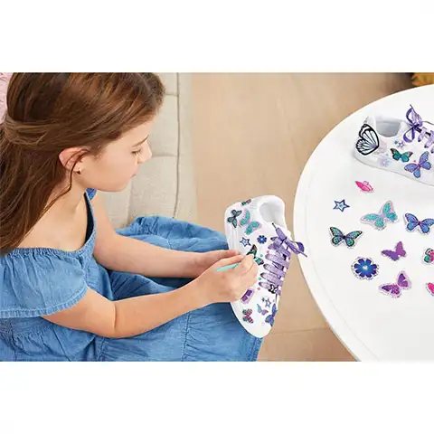 Nu doar machiajul este important atunci când ieși în oraș sau chiar la o întâlnire, ci și ce haine porți. Cu acest set iti poti face pantofii mai frumosi si magici, ii poti decora dupa bunul plac cu autocolantele incluse si alte accesorii. In set vei gasi fluturi, autocolante si alte accesorii care se refera si la fluturi. Lipirea elementelor este ușoară, pas cu pas este explicată în instrucțiunile incluse în set. Este ideal pentru copii, deoarece dezvoltă creativitatea, dexteritatea și răbdarea în timpul jocului.