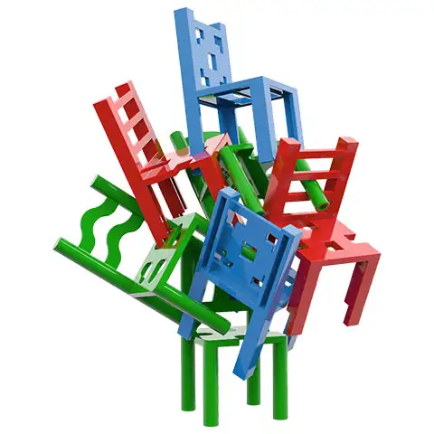 - 24 de scaune în trei culori diferite (8 albastru, 8 verde și 8 roșu)