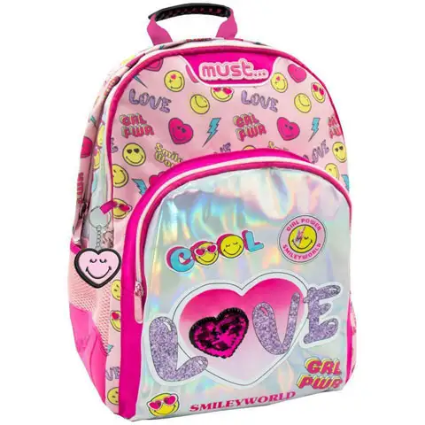 Acest rucsac este o alegere excelentă din toate punctele de vedere, deoarece modelul emoji vesel și culoarea feminină îl vor face cu siguranță preferatul unei fete, în plus este o alegere la fel de grozavă pentru rechizite școlare, precum și pentru lucrurile personale în timpul unei vacanțe. Rucsacul nu este doar sclipitor, ci si foarte confortabil pentru care sunt responsabile bretelele late, reglabile si spatele captusit. Pe lângă comoditate, designul practic a jucat și un rol important, ceea ce se reflectă în mai multe compartimente de diferite dimensiuni și buzunare laterale din cauciuc, ceea ce face foarte ușoară organizarea conținutului genții. Nu în ultimul rând, geanta este confecționată dintr-un material rezistent, durabil, ceea ce este o garanție că copiii pot conta pe acest rucsac timp de câțiva ani de școală.