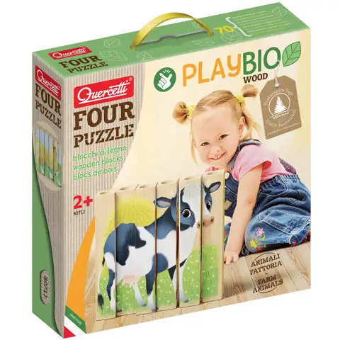 PlayBio Animale de curte 4 in 1 puzzle lemn - QuercettiPlayBio Animale de curte 4 in 1 puzzle lemn - Quercetti