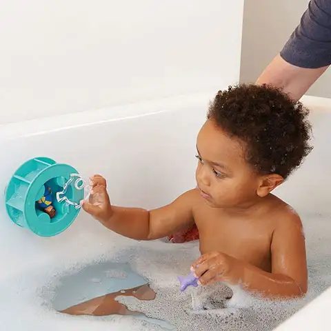 Cu ajutorul jucariilor de baie Playmobil 1.2.3, cei mici se pot distra chiar si in timp ce fac baie. Roata de apă completă cu pui de rechin oferă experiență maximă în cadă sau piscină. Pur și simplu atașați roata cu apă cu ventuză de marginea căzii sau a faianței, așezați figurina în centru și închideți ușa. Figurinile și accesoriile Playmobil sunt compatibile între ele, astfel încât copiii le pot varia liber pentru a crea o lume reală, colorată și diversă în care pot fi jucate chiar și cele mai neobișnuite povești.