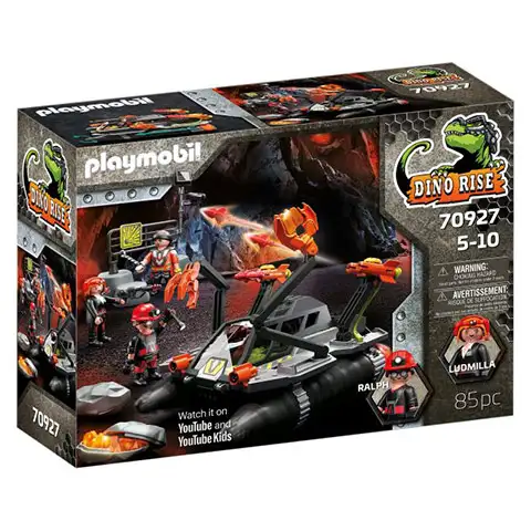 Seria Dino Rise de la Playmobil oferă seturi cu totul speciale pentru copii, cu care se pot juca mult timp și se pot inventa povești inedite. Fiecare set înseamnă o nouă aventură pentru cei mici. Vehiculul din pachet este echipat cu un burghiu distructiv, pe care Ludmilla și Ralph îl folosesc pentru a pătrunde în mina Dino. Pe lângă burghiu, este echipat și cu două tunuri funcționale de trage de proiectile și în plus caută pietre de energie cu două brațe flexibile. Pe lângă piesele menționate până acum, există și alte accesorii pentru a face jocul mai incitant.