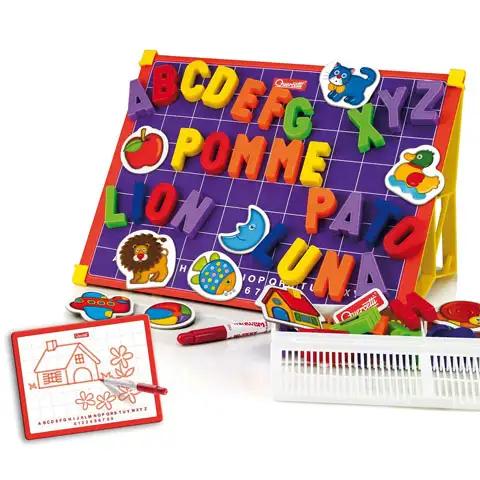 Quercetti: Tabel magnetic cu litere mari 48 bucati + suport Quercetti: Tabel magnetic cu litere mari 48 bucati + suport