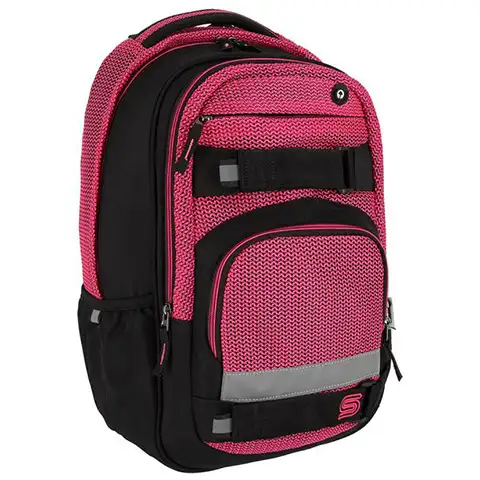 Această geantă aduce vitalitate tinerească și stil modern, în special prin combinația de culori strălucitoare roz și negru și forma curată și rotunjită. Geanta de școală Campus poate fi preferata fetelor tinere, nu doar datorită aspectului său, ci și datorită confortului și funcționalității sale. Spatele căptușit și curelele de umăr largi și reglabile asigură confort. Cu toate acestea, nici designul practic al gentii nu este neglijat, intrucat compartimentul principal spatios este dotat cu un suport pentru laptop, in timp ce buzunarele mai mici ajuta la organizare. Buzunarele laterale elastice oferă un loc practic pentru sticle de apă sau alte obiecte mici. Telefonul are un buzunar separat, care are și o ieșire pentru căști. Geanta este echipata cu un decor reflectorizant, care creste vizibilitatea si siguranta. Aceasta geanta de scoala Campus vine in intampinarea nevoilor tinerilor nu doar ca aspect, ci si din punct de vedere al confortului si functionalitatii, fie ca este pentru scoala, sport sau iesiri.