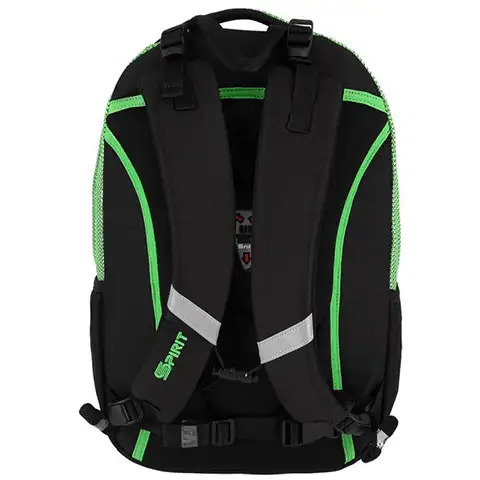 Spirit: Campus ghiozdan rotunjit negru si verde, rucsac 46x33x22cm