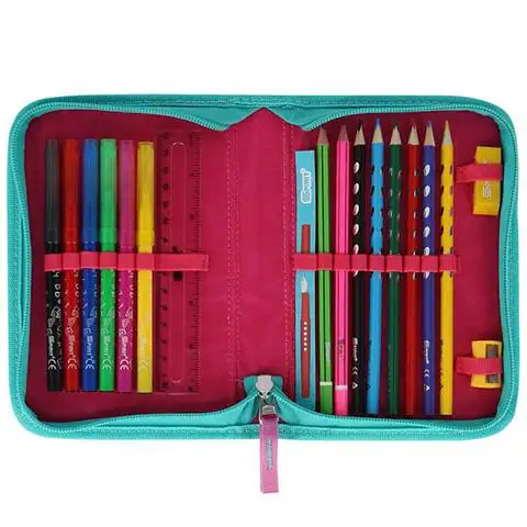 Acest pachet de mare valoare include toate echipamentele de care ar putea avea nevoie fetele care încep școala. Printre penare, găsiți unul cilindric și unul cu design clasic, care conțin deja papetăria. Setul include de asemenea un sac de sport și un portofel, ambele fiind utile pentru utilizarea de zi cu zi.