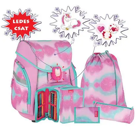 Spirit: Model 3D Unicorn set ghiozdan ergonomic din 5 piese cu iluminare LED 34x22x41cm