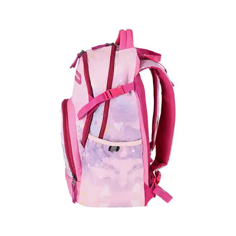 Nuanțele minunate de mov, roz, picturile în formă de inimă și mai ales caii care apar în fața genții sunt factori care le conduc pe fetițe într-o țară de basm. Producătorii din seria ZERO+ încearcă să-i surprindă pe cei mici cu rucsacuri și ghiozdane din ce în ce mai frumoase. Această geantă are un carlig portabil, plus cateva buzunare pentru a tine accesoriile organizati cei mici. O altă caracteristică este că are o placă de bază optimă din punct de vedere anatomic, stabilă și nu în ultimul rând un design captusit ergonomic, ceea ce înseamnă că se potrivește perfect pe spate, astfel încât să poată fi purtată confortabil.