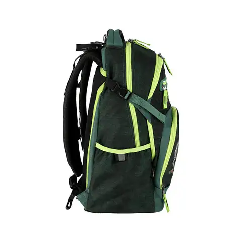 În zilele noastre, găsim din ce în ce mai multe jocuri cu dinozauri, așa că nu putea să lipsească nici de pe geanta de școală. Geanta este vopsită cu totul alte nuanțe de verde, ca o junglă din care va ieși în curând T-Rex. Pe langa designul sau frumos, are si alte caracteristici, mai ales un design captusit ergonomic care te ajuta sa porti geanta si este optim anatomic. În plus, are un cârlig portabil și o bază stabilă.