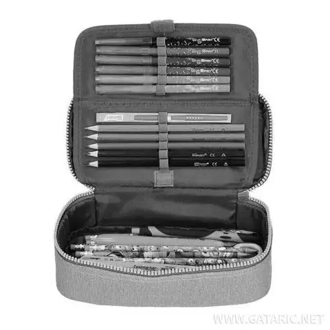 Există suficient spațiu în interiorul penarului pentru o varietate de articole de papetărie. De asemenea, are piese de depozitare suplimentare pentru a facilita depozitarea organizată. O bandă de cauciuc permite fixarea practică a celor mai utilizate articole de papetărie, astfel încât instrumentele importante să fie mereu la îndemână. Riglele au un buzunar special conceput unde pot fi depozitate în siguranță. În plus, sunt disponibile piese mici suplimentare, cum ar fi calculatorul, astfel încât toate dispozitivele să poată fi păstrate îngrijite și ordonate.