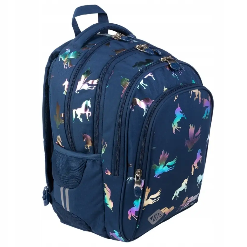 Dacă ești în căutarea unui ghiozdan cu adevărat practic și confortabil pentru fetița ta, nu vei fi dezamăgită de geanta St.Right Hologram Unicorn, în plus, culoarea de bază închisă și modelul unicorn cu siguranță le va mulțumi fetițele. Geanta este confortabilă pentru copii datorită spatelui căptușit și a curelelor de umăr reglabile și largi. Geanta de școală din material de calitate superioară, impermeabilă, este și ea practică pentru depozitare, deoarece are mai multe compartimente mari și buzunare cu fermoar pentru cărți și caiete, iar într-un buzunar lateral din cauciuc este loc pentru o sticlă de apă. Nu în ultimul rând, este foarte utilă talpa întărită, ceea ce asigură longevitatea genții.
