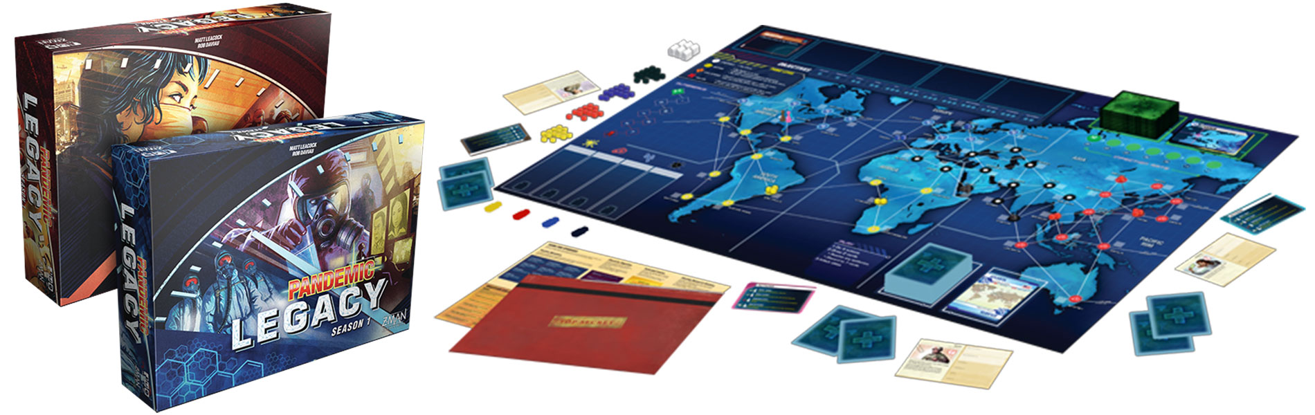 Pandemic Legacy este un joc de campanie de cooperare cu o poveste globală care se desfășoară pe parcursul a 12-24 de sesiuni, în funcție de cât de bine se descurcă grupul în joc. Inițial, jocul începe foarte asemănător cu Pandemia de bază, cu o echipă de specialiști în boli care luptă împotriva cronometrului pentru a călători în jurul lumii, confruntându-se cu focare în timp ce caută remedii pentru patru epidemii înainte de a se declanșa.