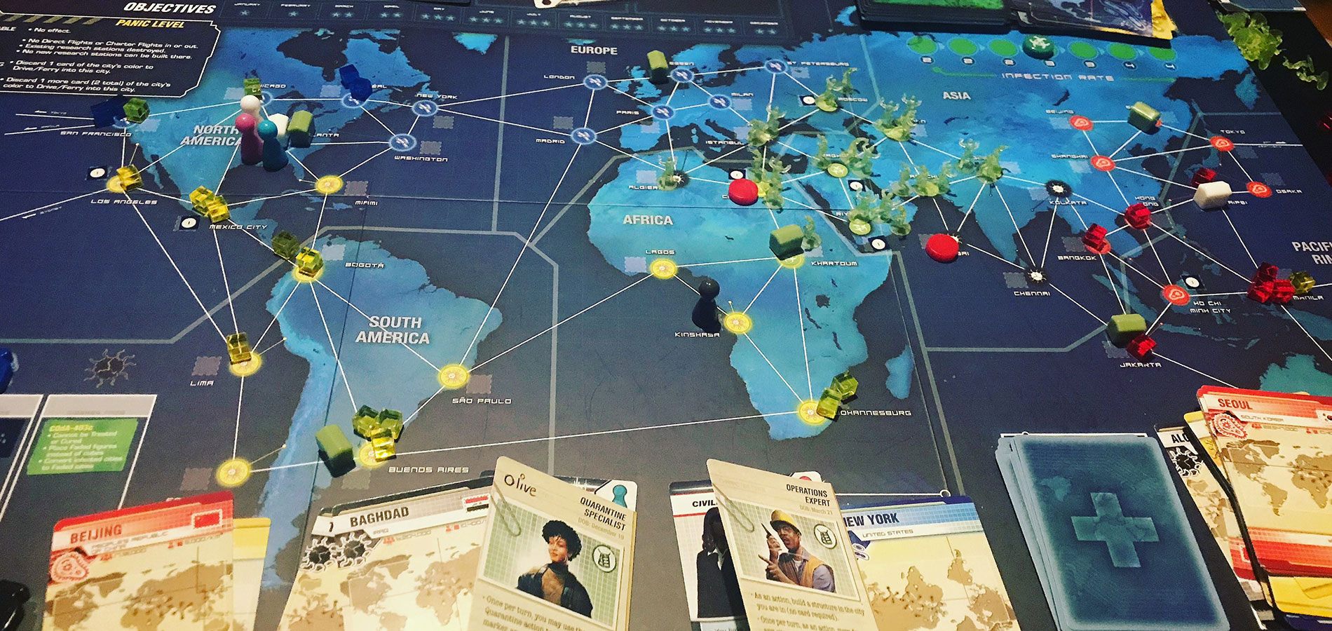 Jucătorii au patru acțiuni la rândul lor pentru a călători în lume în moduri diferite, ceea ce le cere uneori să arunce o carte, să construiască structuri precum stații de cercetare, să trateze boli prin îndepărtarea unui cub de pe tablă și dacă toate cuburile de o culoare au fost eliminate, apoi reușesc să eradice boala, dar pot schimba cărți cu alți jucători sau pot găsi un remediu pentru o boală aruncând cinci cărți de aceeași culoare în timp ce stau la o stație de cercetare cu silueta lor. Fiecare jucător are un rol unic și are abilități speciale unice pentru el care îl ajută în aceste operațiuni.